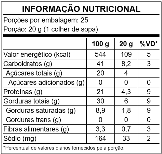ALÉRGICOS: NÃO CONTÉM GLÚTEN. CONTÉM AMENDOIM, LEITE E DERIVADOS, LACTOSE. PODE CONTER OVO, AMÊNDOAS, NOZ, SOJA, CASTANHA DE CAJU, CASTANHO DO BRASIL, AVELÃ E PISTACHE.